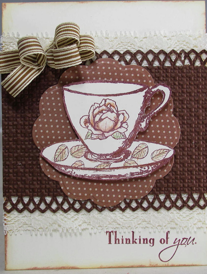 A little lace on each edge. The teacup is from the Relax A Bit Set cut out and foam
