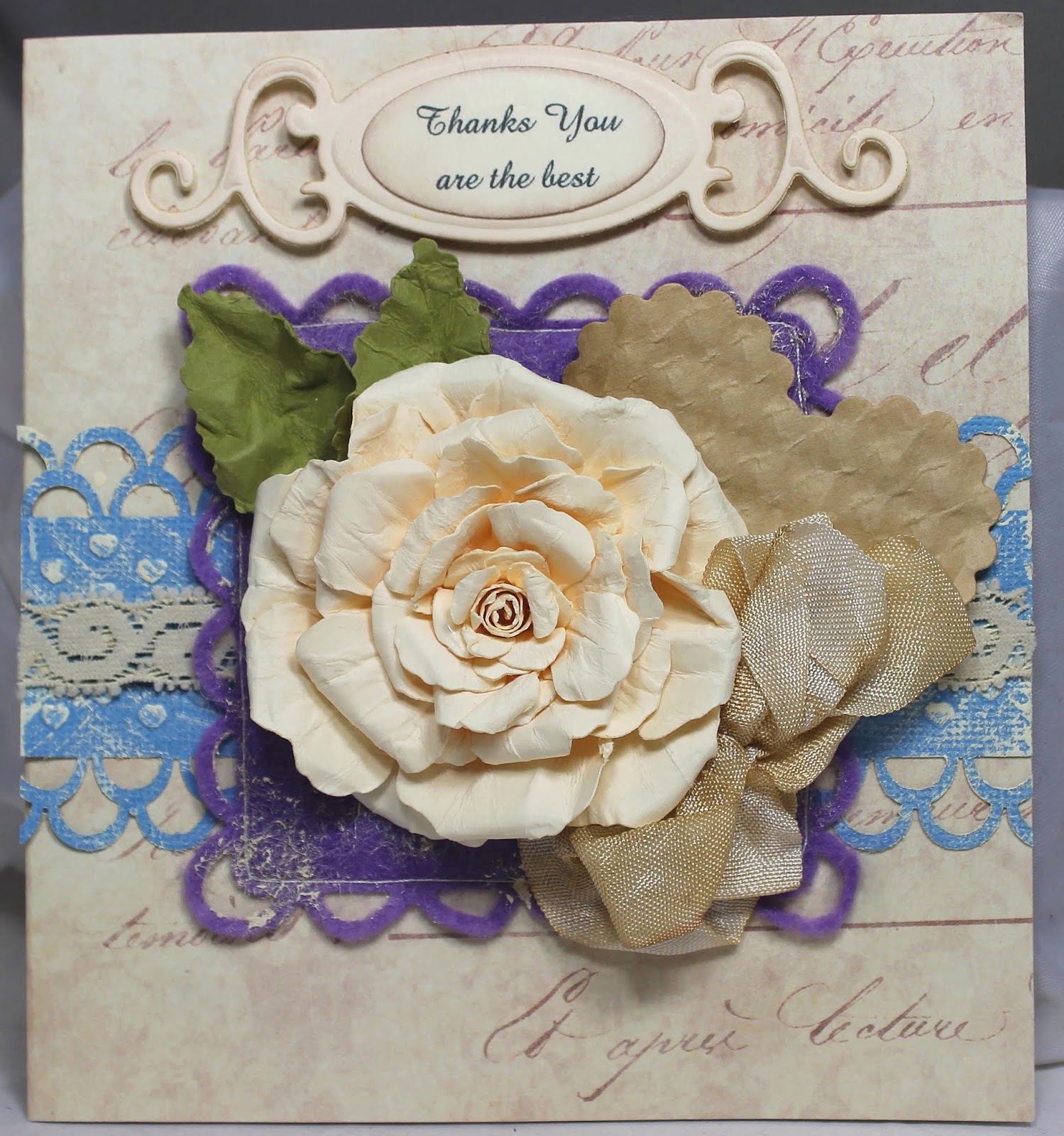 I love old dressmaker forms and have quite a few stamps. I made some background paper and embossed it. Have to have some stitching on the card if you are using the dressmaker form right! Some dyed seam binding for ribbon and its ready to mail!!
